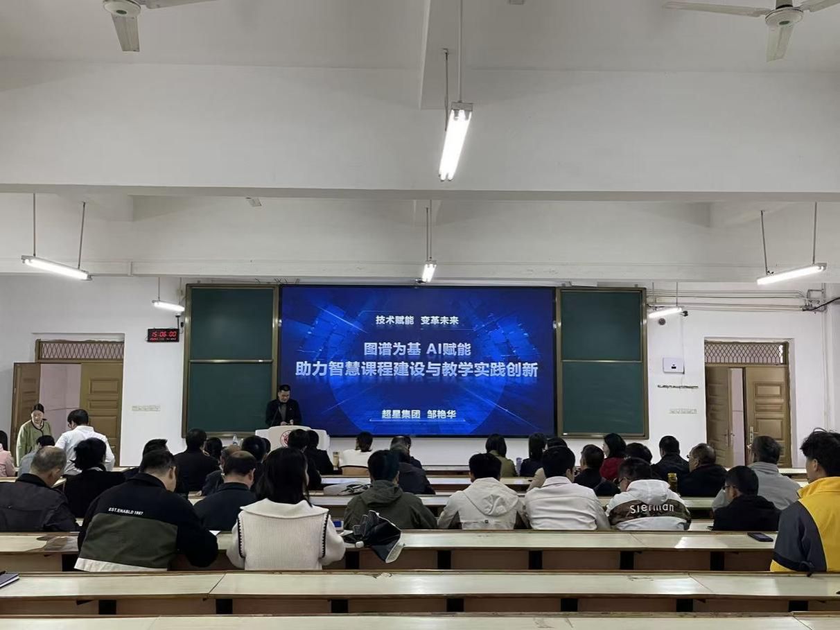 2025年11月4日下午,智能制造与材料工程学院在主教学楼Z1D3成功举办了一场以“图谱为基 AI赋能——助力智慧课程建设与教学实践创新”为主题的专题讲座。本次活动旨在探讨如何借助图谱与人工智能技术,推动智慧课程建设与教学实践创新,进一步提升教育教学质量。学院师生共计百余人积极参与。
