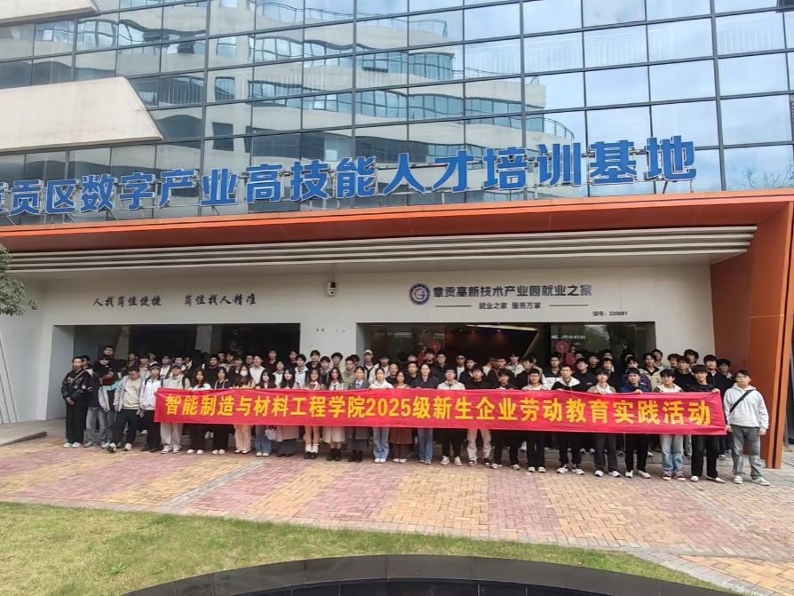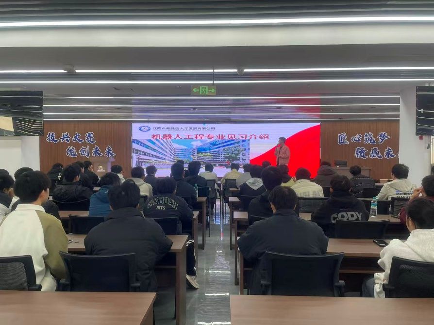本网讯:为增强机器人工程专业新生对行业前沿技术的认知,提升实践操作能力与劳动素养,11月23日,智能制造与材料工程学院机器人教研室教师带领机器人工程专业25级新生前往章贡区数字产业高技能人才培训基地,开展企业劳动实践活动。