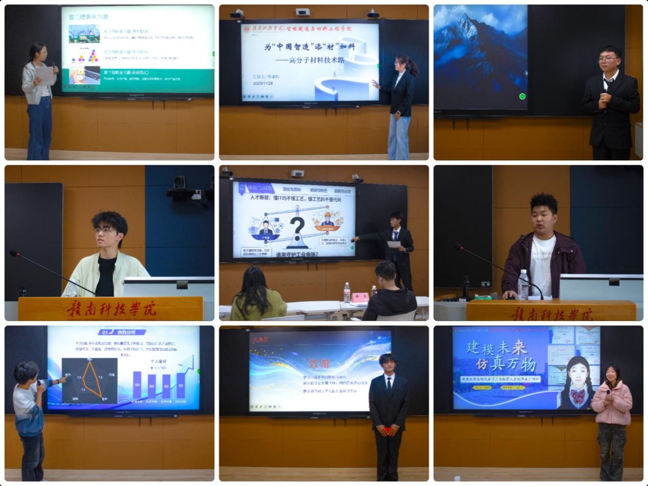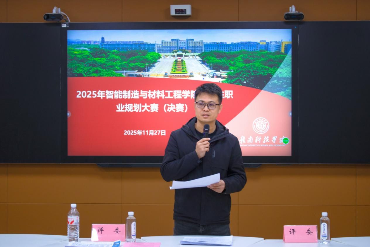 本网讯:为全面落实立德树人根本任务,提升学生职业规划能力与就业竞争力,智能制造与材料工程学院于11月27日至28日在628智慧教室成功举办2025年大学生职业规划大赛院级决赛。大赛旨在引导学生树立正确的成才观、就业观,推动其科学规划学业与职业发展。智能制造与材料工程学院党委委员肖志华、辅导员吴欣老师和周艳霞老师应邀担任评委。