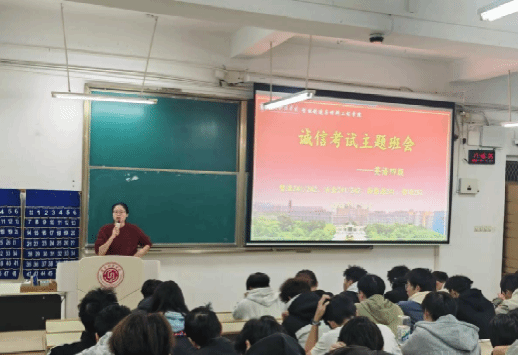 本网讯:为深入贯彻立德树人根本任务,强化学业考试与大学英语四六级考试的诚信要求,引导学生树立“诚信立身、匠心筑梦”的价值理念,12月3日至5日,智能制造与材料工程学院面向全院各年级学生,以班级为单位组织开展“诚信铸魂,笃行致远”主题班会,聚焦考试诚信教育,筑牢学生思想防线。