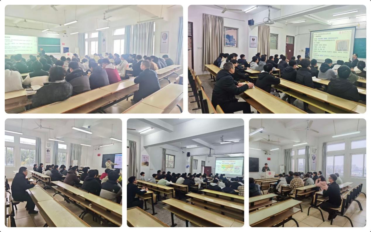 本网讯:智造学院为全面掌握新学期教学运行情况,精准把脉课堂教学质量,切实保障教学工作有序开展,3月9日开学第一天,领导深入课堂一线,随机听取老师讲课。党委副书记朱根松听取张聚国老师《塑料成型与工艺与模具设计》课程,副院长刘辉听取彭冲老师《齿轮材料与工艺》课程,副院长张魁芳听取胡小洣老师《钢铁冶金学》课程,党委委员关开荣听取汪志刚老师《数字栾生技术》课程,党委委员肖志华听取许立强老师《重金学冶金学》课程。