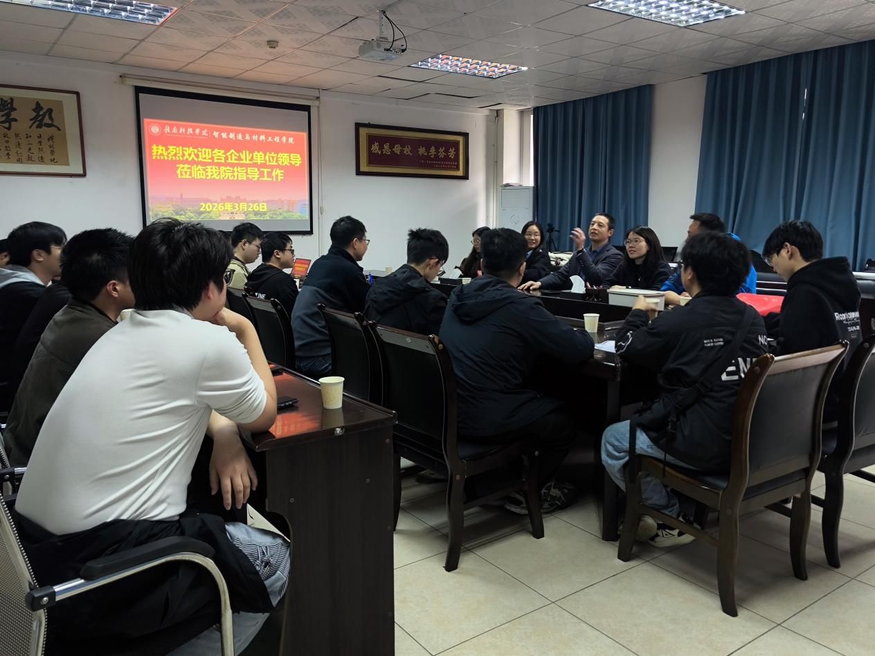 本网讯:3月26日下午,由智能制造与材料工程学院主办的“匠心智造”专场就业宣讲会在工程楼416会议室顺利举行。本次宣讲会特别邀请了江西刀父科技有限公司、东莞市宏鹏传动科技有限公司、浙江丰立智能科技股份有限公司三家行业代表性企业走进校园,与在校学子面对面交流,搭建起高质量就业的对接平台。智能制造与材料工程学院副院长刘辉、“照耀齿轮班”班主任曾称福及相关特色班毕业生参与。