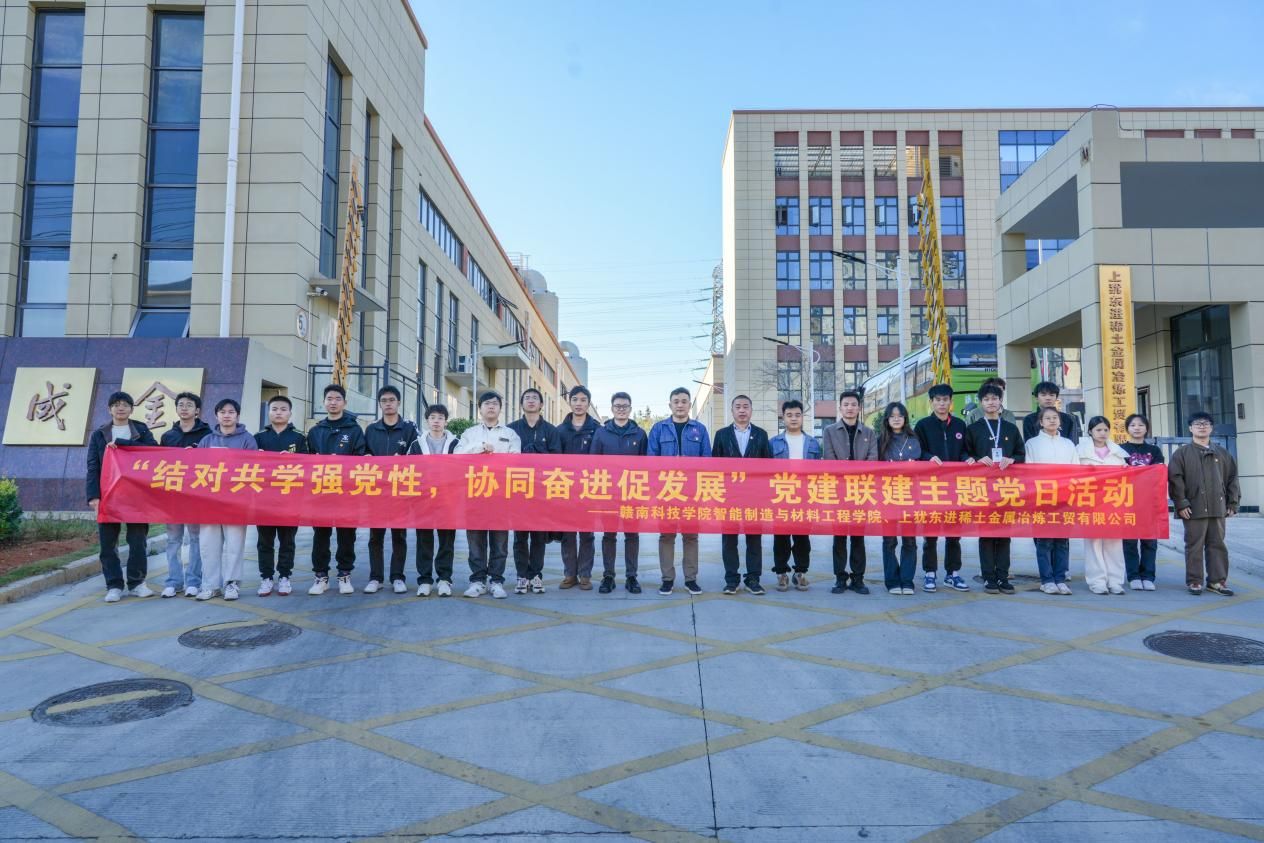 本网讯:11月20日下午,赣南科技学院智能制造与材料工程学院党委副书记朱根松等一行23人,赴上犹东进稀土金属冶炼工贸有限公司,联合开展以“学全会精神,谋事业发展——结对共学强党性,协同奋进促发展”为主题的党日活动。东进稀土金属冶炼工贸有限公司负责人罗林生等人参与了本次活动。双方通过共学、研讨、实地观摩等形式,推动党建与业务深度融合,探索校企合作新路径。